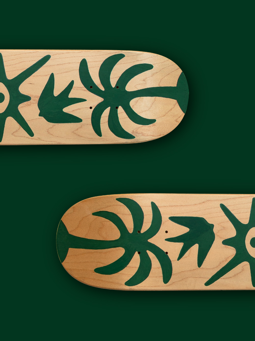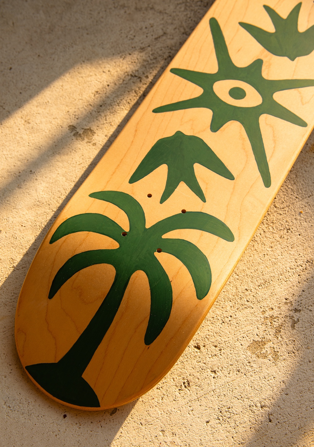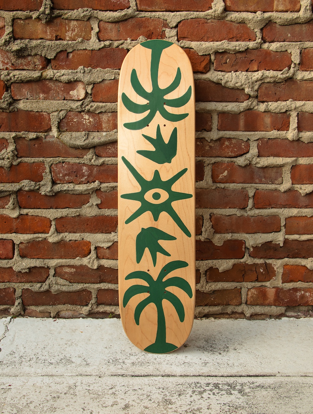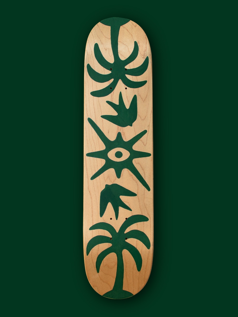 Hand-painted skateboard deck, one of a kind. 7.625″ x 31 1/8″ Natural Finish, 7 ply Hard Rock Canadian Maple Cold Pressed In The USA